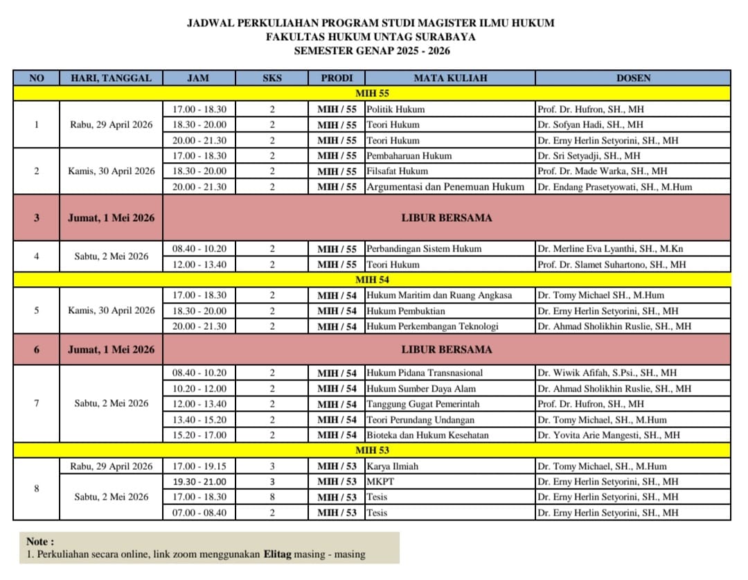 Magister Ilmu Hukum Angkatan 54 - Universitas 17 Agustus 1945 Surabaya